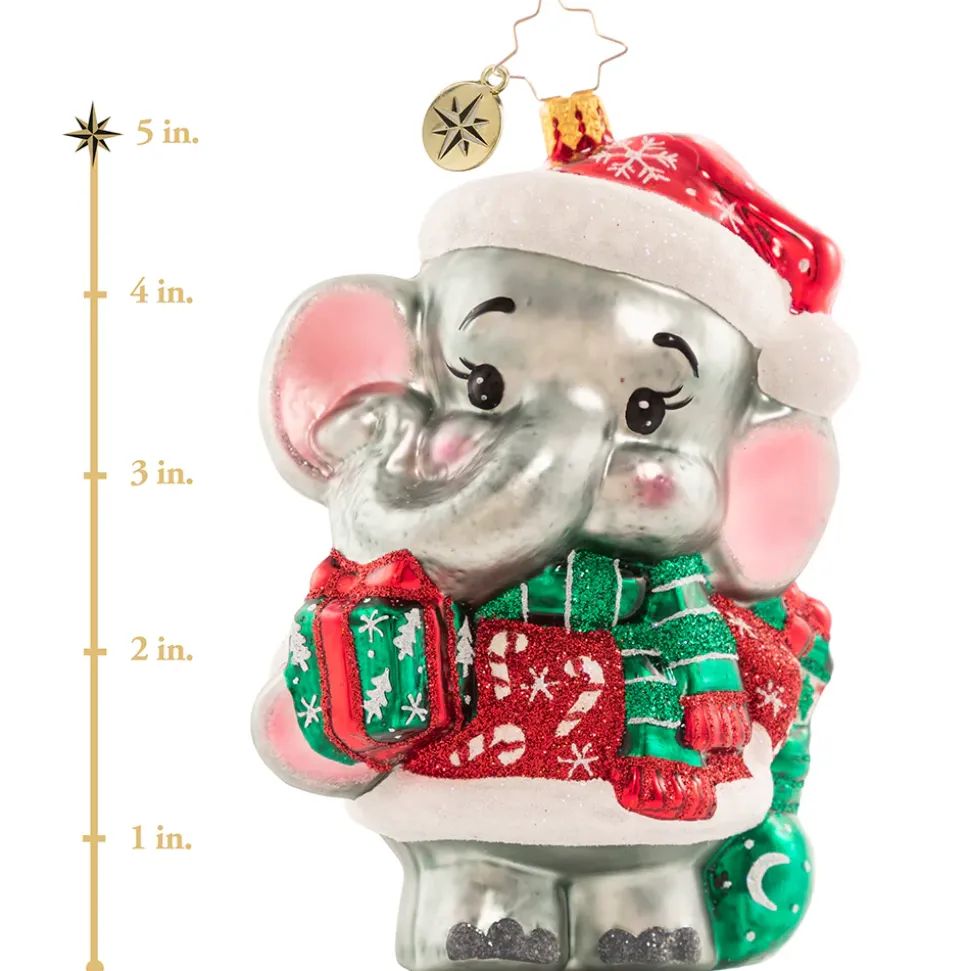 Baby Benevolent Elephant, This Darling Elephant Is Ready For The Season In His Coziest Christmas Sweater. You Can Count On Him To Keep All Your Treasured Holiday Memories Safe– After All, An Elephant Never Forgets! 1020767, Christopher Radko