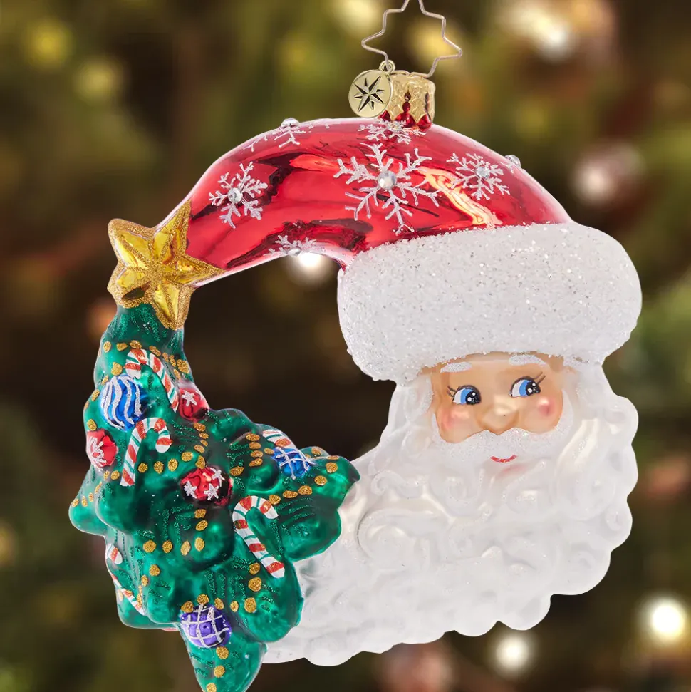 A Beautifully Trimmed Tannenbaum Swirls Together With A Smiling Santa, Creating A Whimsical Wreath-Shaped Piece To Adorn Your Christmas Tree. Moon