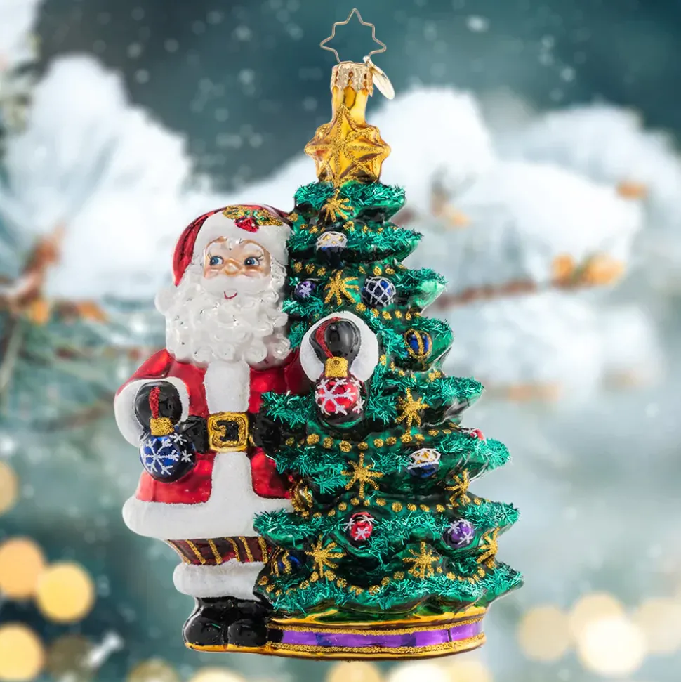 Santa Is Ready To Show Off His Extensive Ornament Collection As He Trims His Christmas Tree With Beautiful Glass Baubles