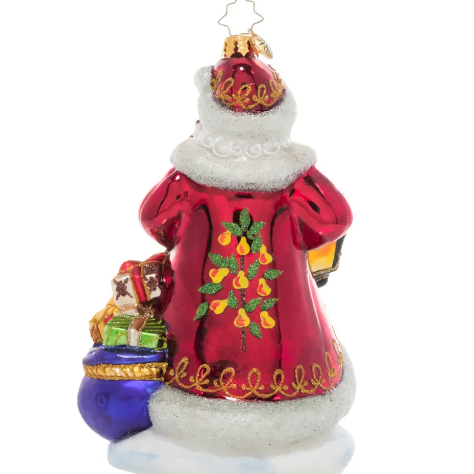 Santa’s Pear Tree, The Premier Piece In Our Ornament Of The Month Collection, This Elegant Ornament Features A Traditional Santa Claus Presiding Over A Golden Pear Tree Topped With A Colorful Partridge Bird. 1021244, Radko