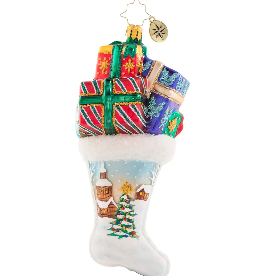 Snow-Dusted Serenity, Santa Went Overboard This Year! Showcasing A Snowy Scene, This Special Stocking Is Chock-Full Of Surprises. 1020801, Christopher Radko