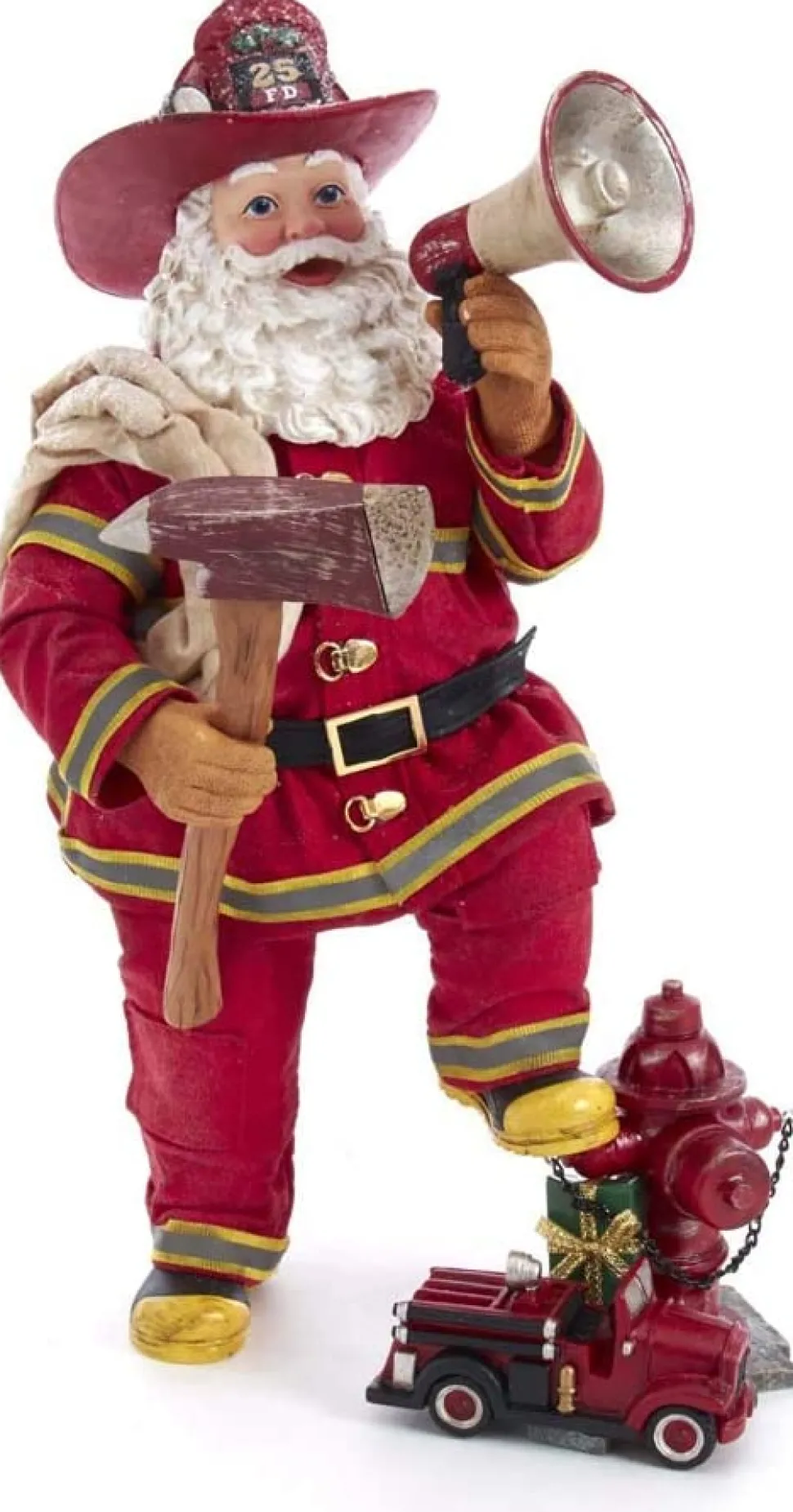 Fireman Santa, Santa Is Shouting Out “Merry Christmas ” With Is Blow Horn….Y’All Take Suit And Enjoy A Happy Holiday Season, Fa0127, Fabriche