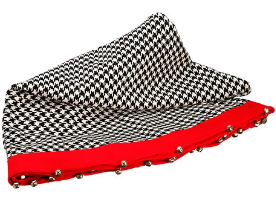 Houndstooth Table Cloth With Red Border And Bells 96″