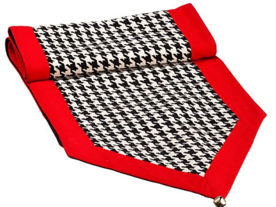 Houndstooth Table Runner, Red Border 14″ X 72″ L