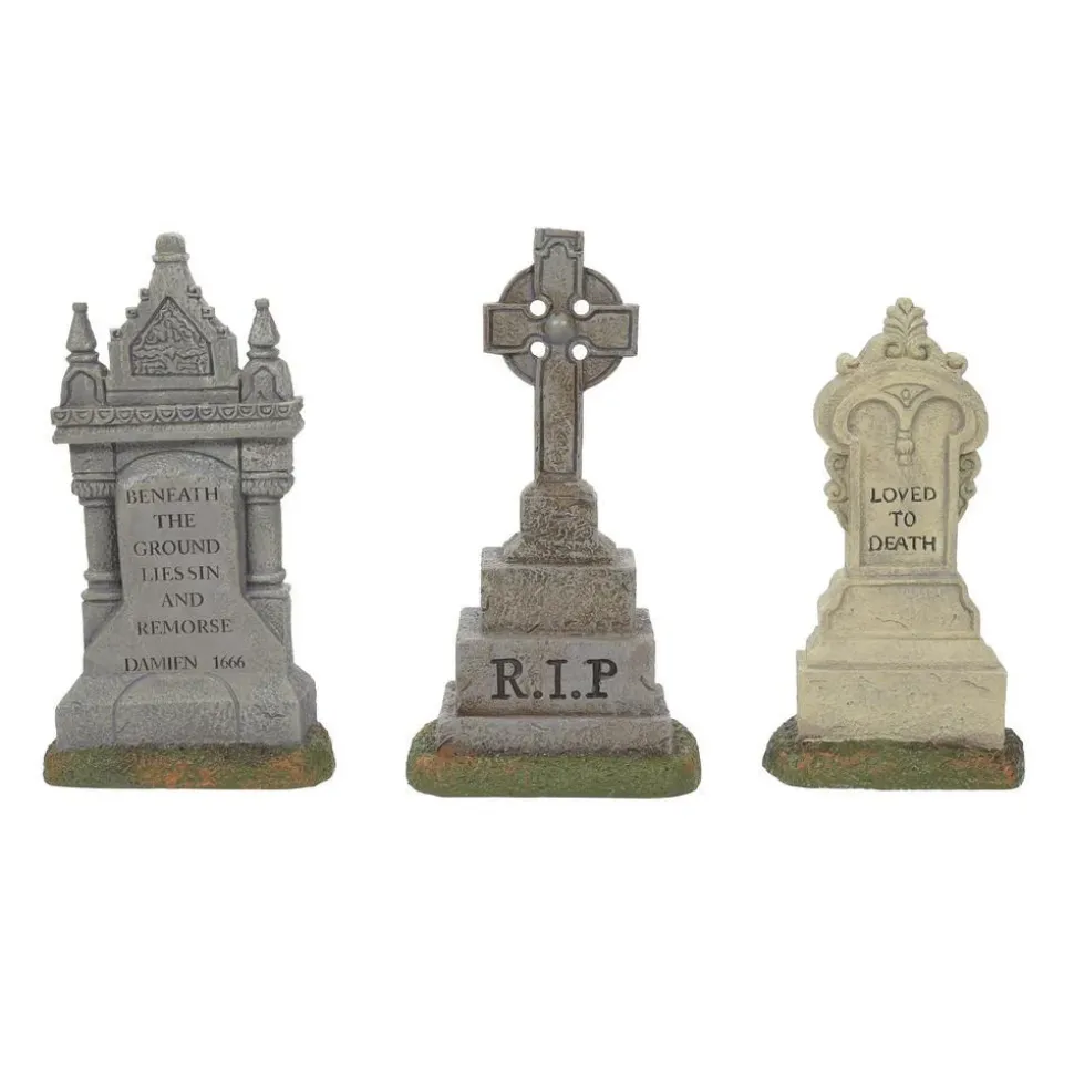 Imposing Monuments, Set Of 3, Add These Larger Tombstones To Your Spooky Graveyard. Made Of Resin, You Will Want Several Sets. 6010450, Halloween Village