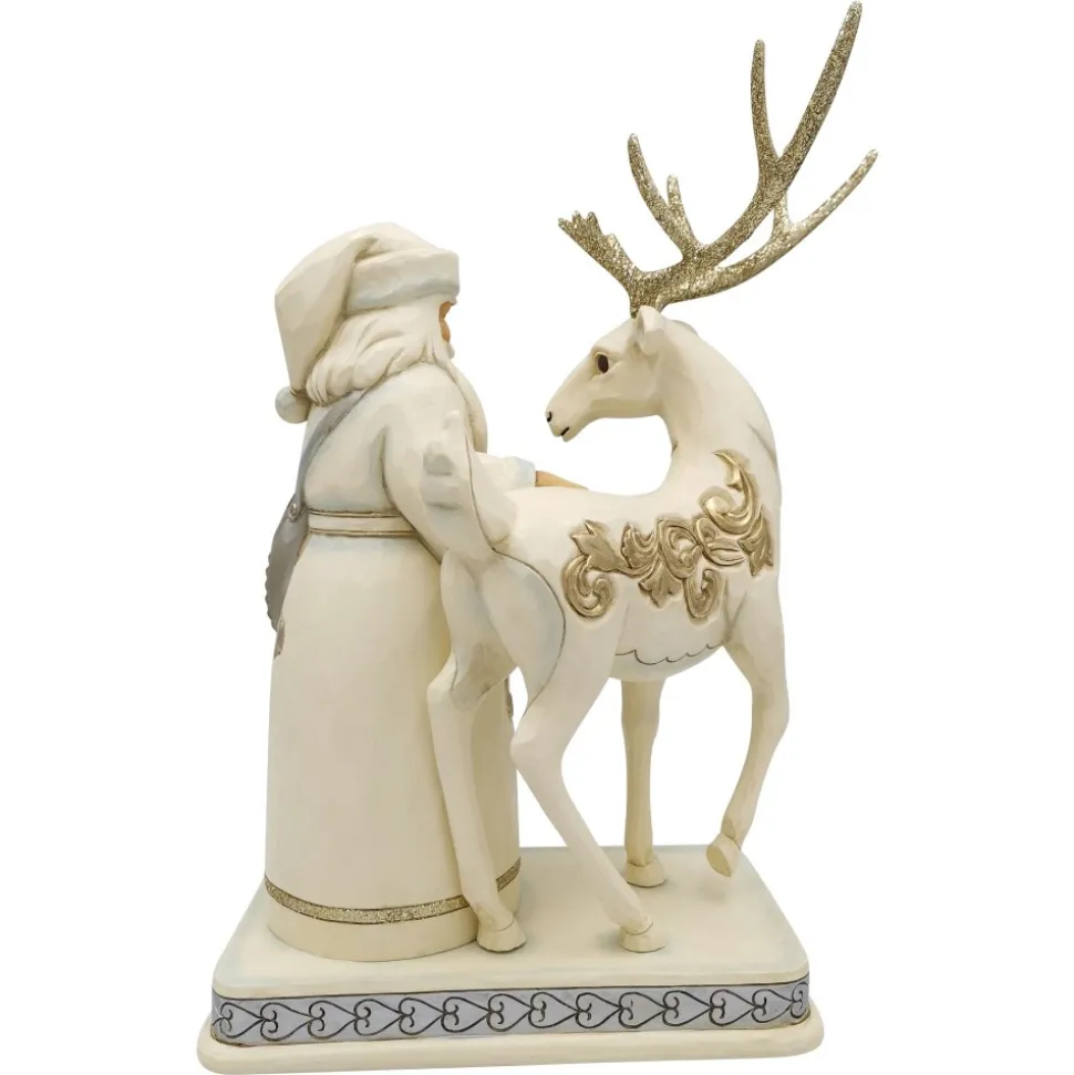 Jim Shore, Holiday Lustre Santa/Reindeer, Santa Approaches His Reindeer Friend With A Calm Hand And Sweet Smile. With A Bag Full Of Carrots To Share, This Golden Pair Remind Us It Costs Nothing To Be Kind. Spread The Love This Season With This Rich Scene Designed By Jim Shore., 6006615, Heartwood Creek