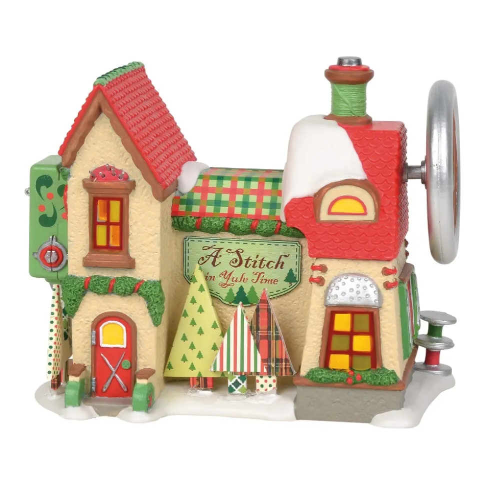A Stitch In Yule Time, The Finest Elf Fabrics Are Hand-Knitted At A Stitch In Yule Time, A Premium Fabric Store Found In The Heart Of The North Pole. Animated, The Wheel Turns As The Needle Goes Up And Down!
