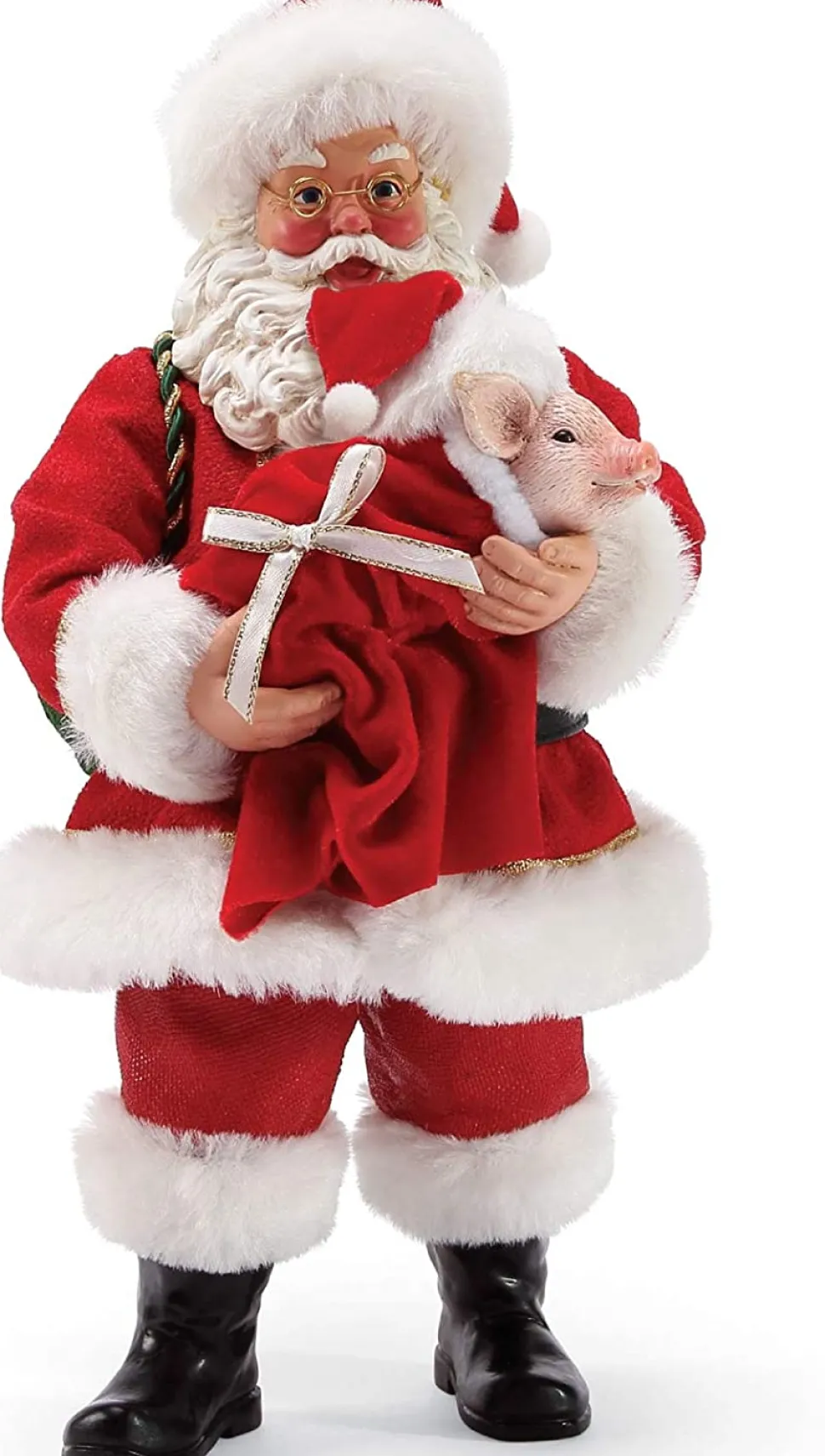 Santa And His Pets Pig In A Blanket, Santa Loves All Animals! Even This Sweet Little Pig! Santa Wears His Traditional Red Robes And The Little Pig Is Swaddled In A Cozy Blanket! 6003437, Possible Dreams