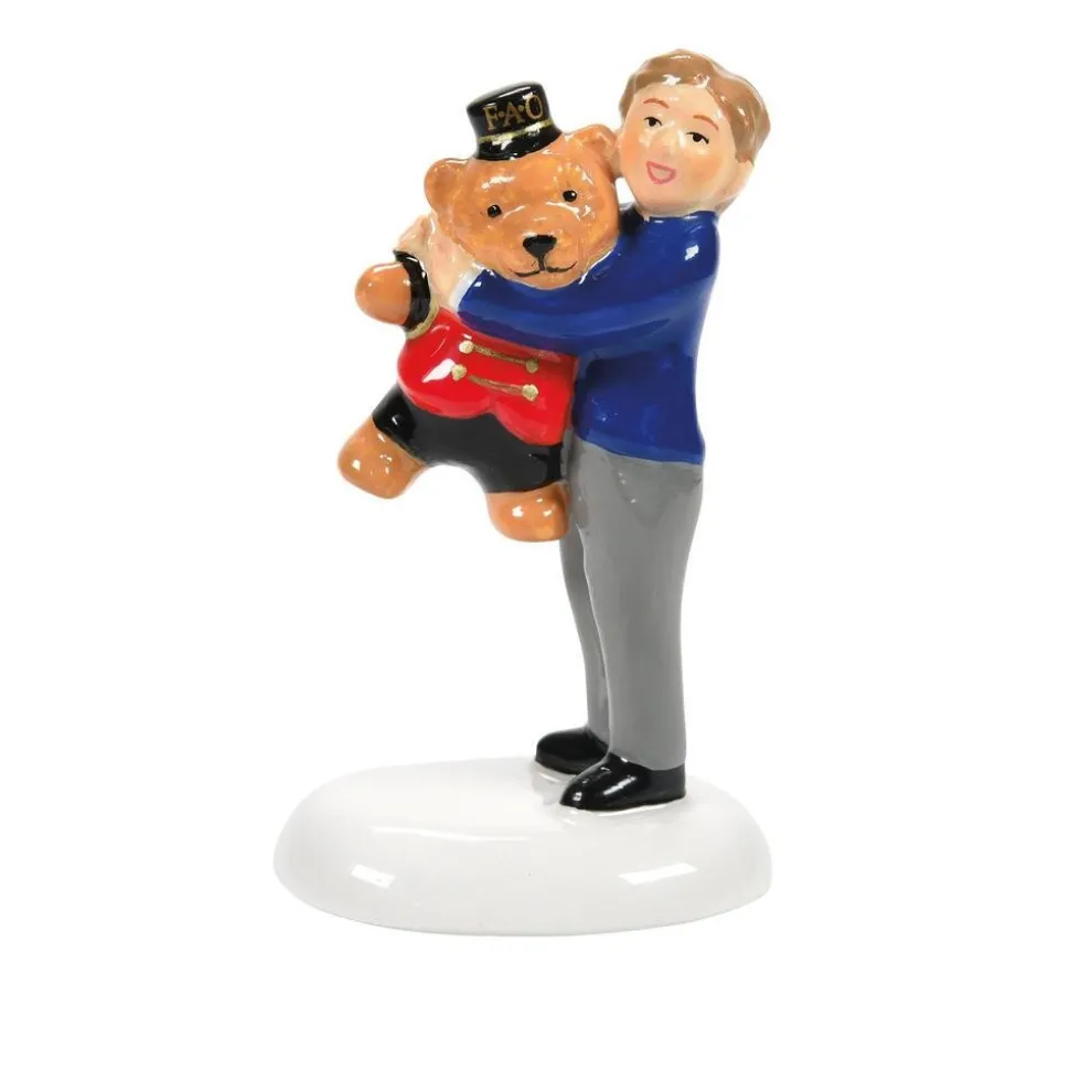 Friends For Life, This Happy Youngster Hugs A New Friend, An Fao Schwarz Teddy Bear Wearing The Signature Toy Soldier Uniform. 6009713, Snow Village