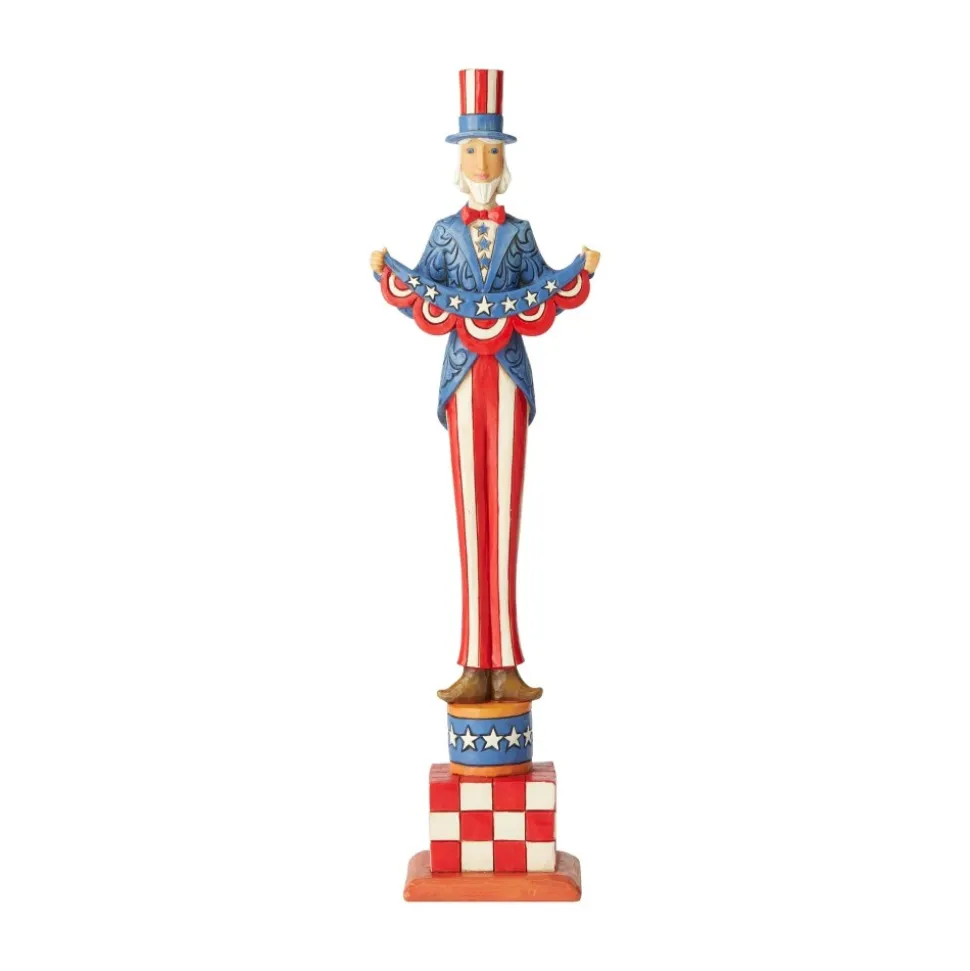 Tall Uncle Sam, 6003976, Jim Shore. This Star-Spangled Uncle Sam Is A Colorful Image Of The Spirit Of America. Beautifully Hand-Painted In Bold Red, White And Blue, This Patriotic Symbol Of Freedom Features Jim Shore’s Unmistakable Design And Heartfelt Attention To Detail.