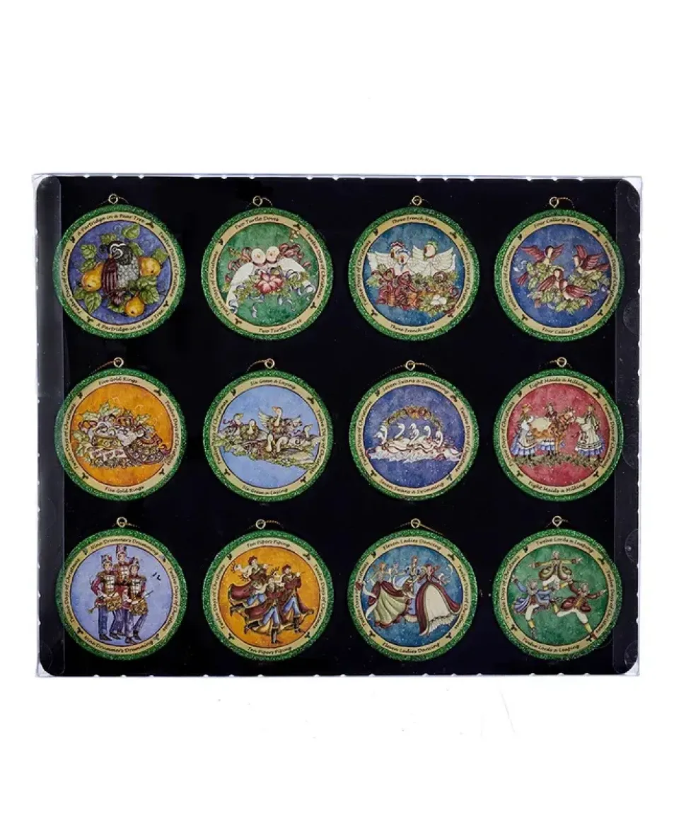 This Resin Twelve Days Of Christmas Disc Ornament Set Of 12 From Kurt Adler Is A Fun And Festive Addition To Any Holiday Decor. Each Of The Twelve Ornaments In This Set Has A Beautifully-Designed Image Representative Of One Of The Verses In The Beloved Holiday Tune, “The Twelve Days Of Christmas.”
