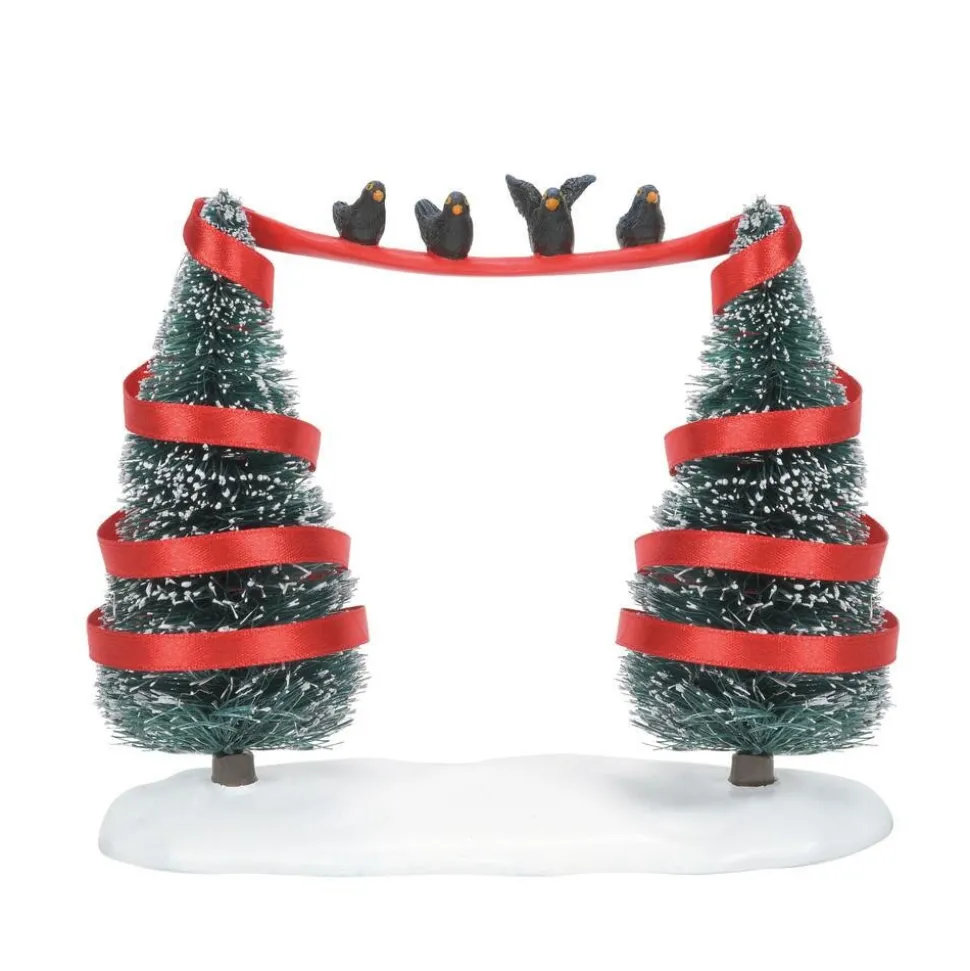 Four Calling Birds Tree, Based On The Traditional English Carol, The “Twelve Days Of Christmas”, Our Interpretation Of “Four Calling Birds” Is Represented By Four Crows Or Blackbirds. They Perch On A Bright Red Holiday Garland Strung Between Two Sisal Trees. 6007692, Department 56