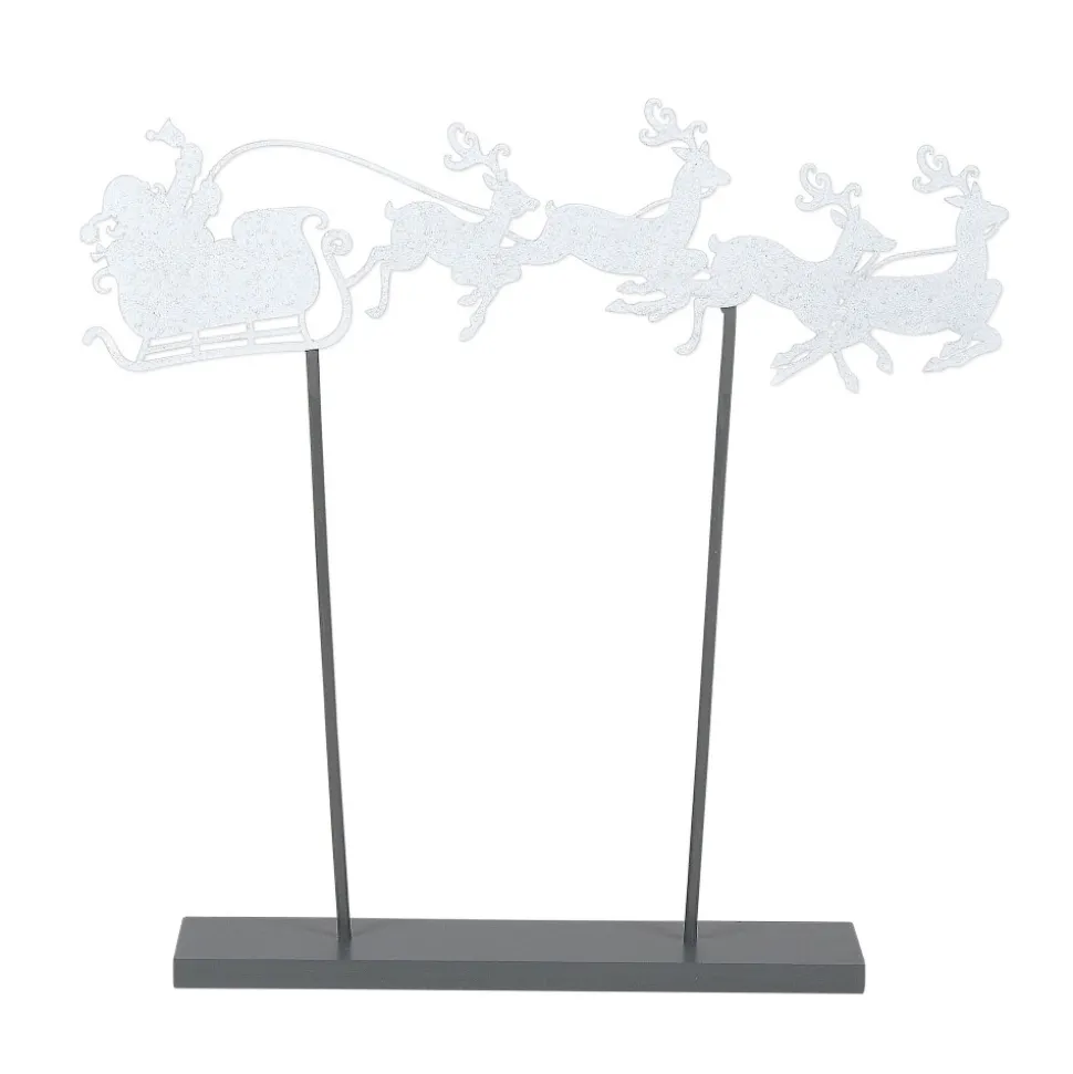 Santa’s Sleigh Silhouette, A Frosty Outline Of Santa’s Sleigh And His Reindeer Add A Fun Backdrop To Your Village Display Sky. This Landscape Accessory Is Hand-Crafted, Hand-Painted, Metal. 6005537, Department 56