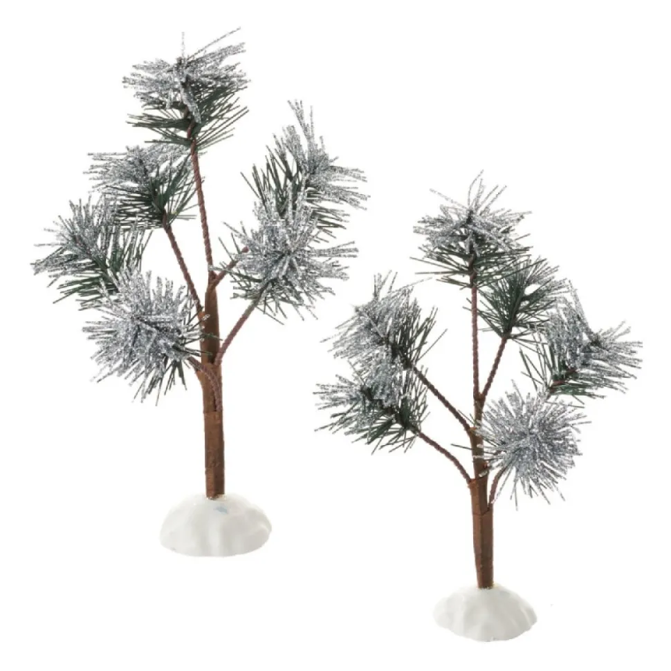 Silver Sparkle Pines, Set Of 2, This New Shape Of Pines Will Fit Nicely With Trees You Already Use In Your Village Display. Made Of Wire With Sisal Pines, The Trees Are 6 And 8 Inches Tall. 4051956, Department 56