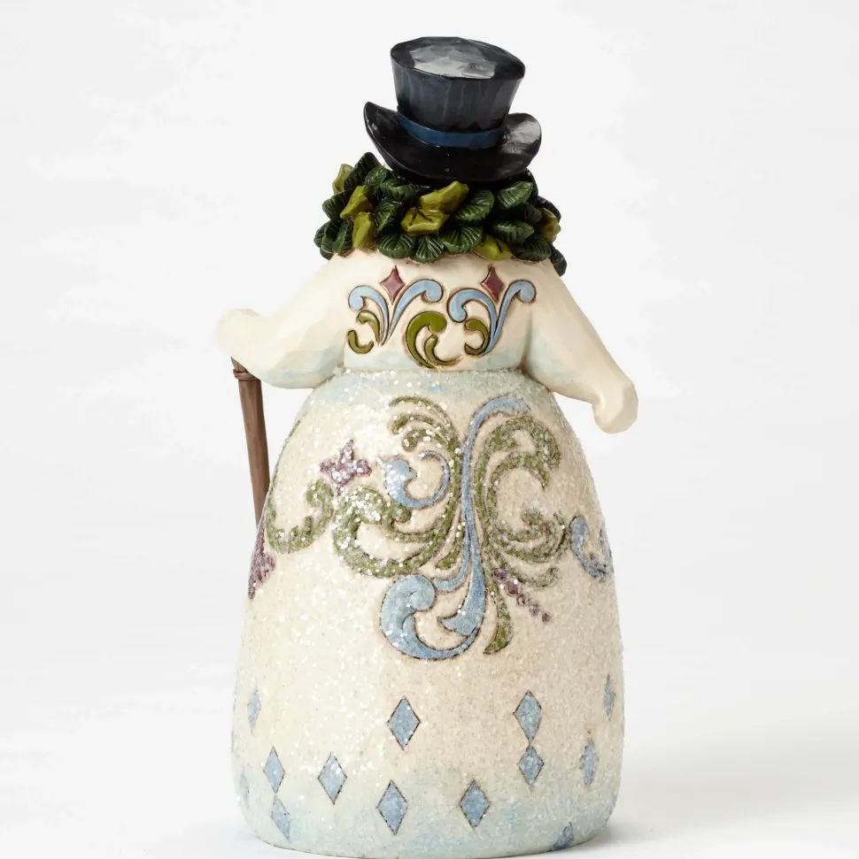 Victorian Snowman With Wreath, Jim Shore’s Enchanting Victorian Collection Captures The Warm Decorative Style Of A By-Gone Era With A Rich Color Palette And Subtle Sugary Finish. This Dapper Snowman Is Decked For The Season With Top Hat; Cane And A Festive Holiday Wreath.