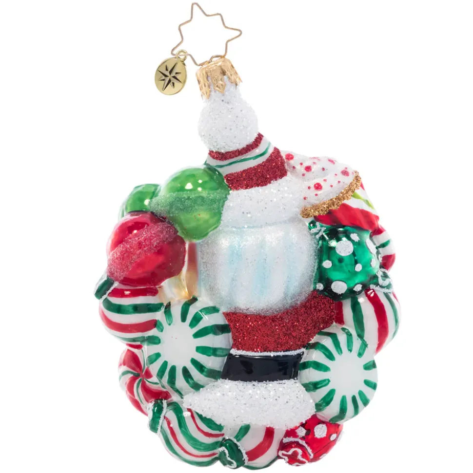 This Darling Santa Is Surrounded By A Wreath Of Delicious Peppermints. Decorate Your Tree With This Candy-Coated Red And Green Treat!